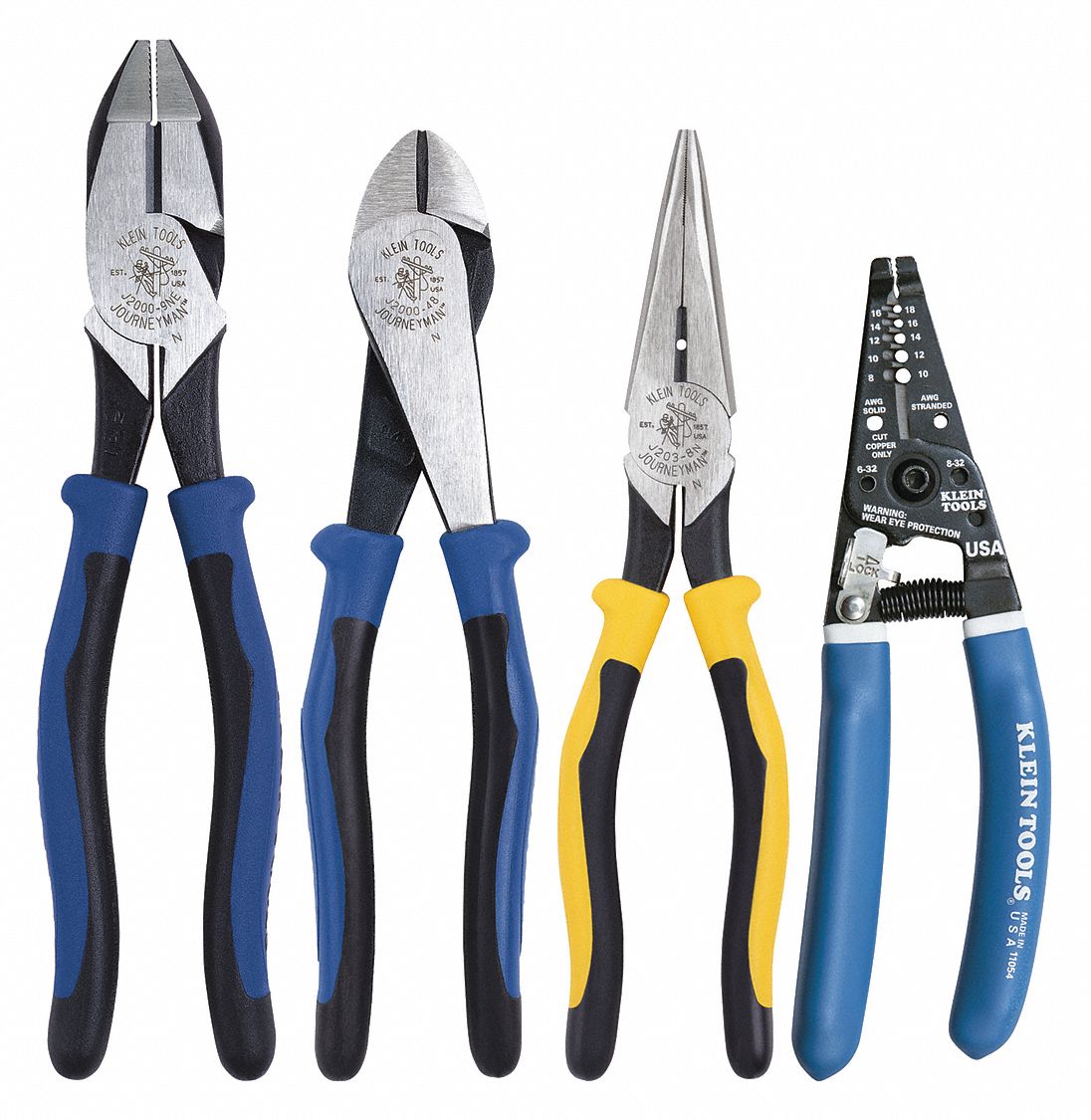 KLEIN TOOLS Plier Set 4 Pliers, Deluxe Cushion Grip, Spring Return, 2